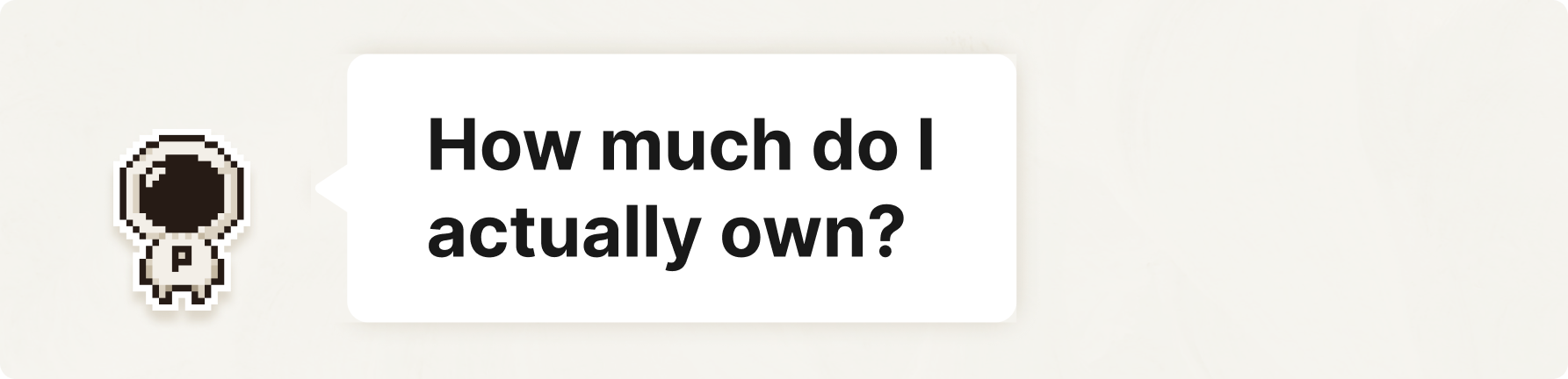 - Estimate ownership percentages - you probably have this in a google sheet. This is a rough back-of-the-envelope calculation for who owns what.